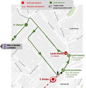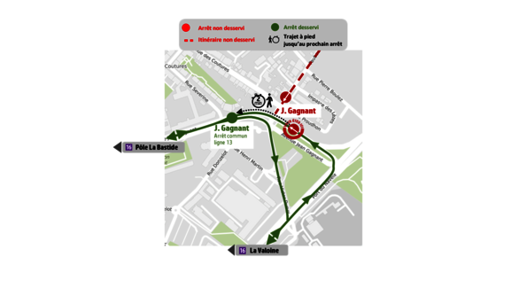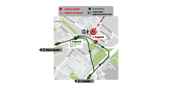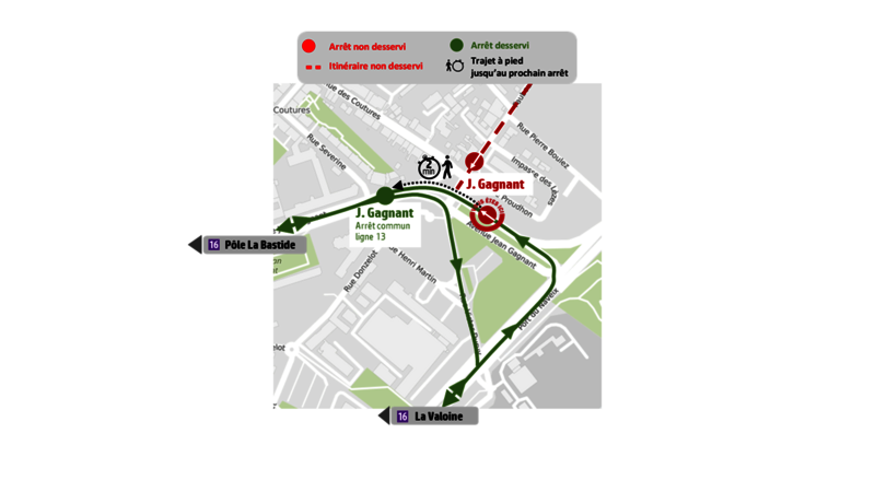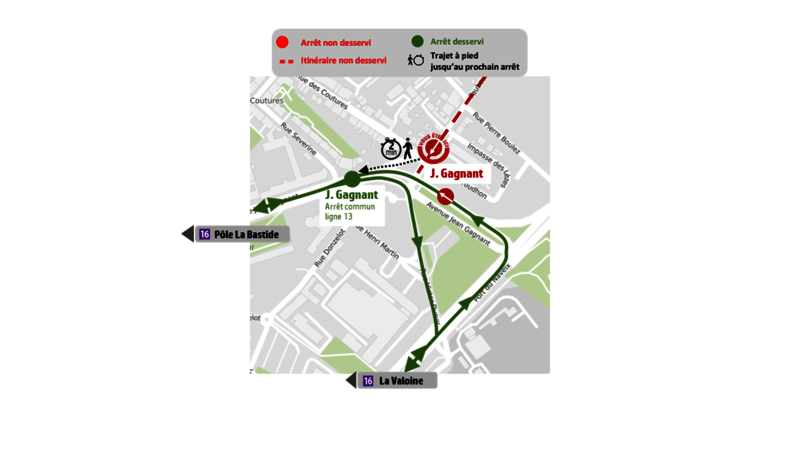 Par conséquent, les arrêts « J. Gagnant » et « E. Reclus » ne seront pas desservis dans les 2 sens de circulation ainsi que l’arrêt « Lycée Dautry » vers La Valoine.
