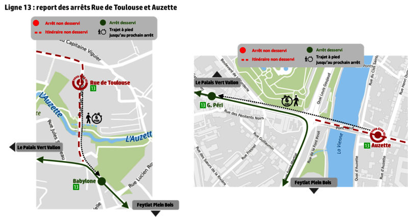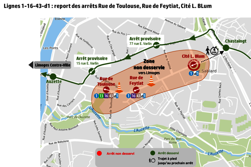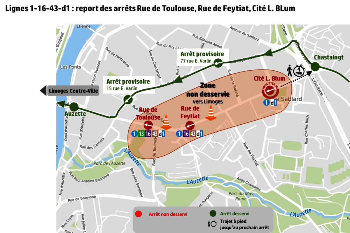 - Arrêt « Rue de Feytiat » reporté sur l’arrêt provisoire 15 rue E. Varlin
