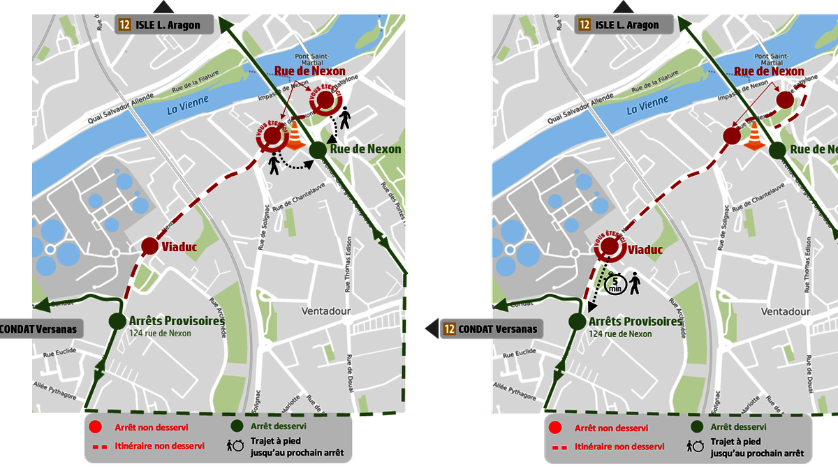 Par conséquent, les arrêts « Viaduc » et « Rue de Nexon » ne seront pas desservis.