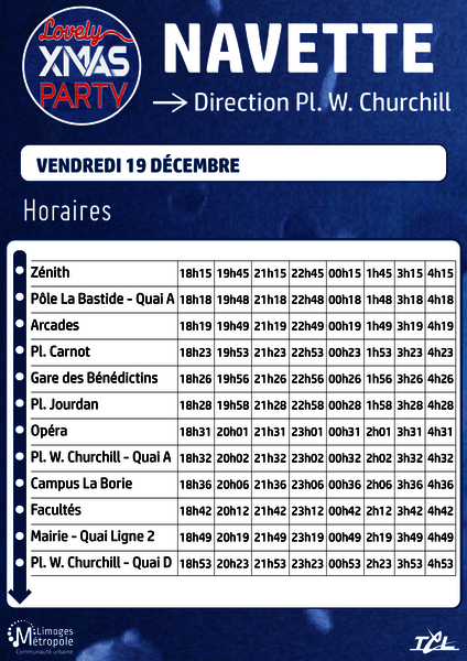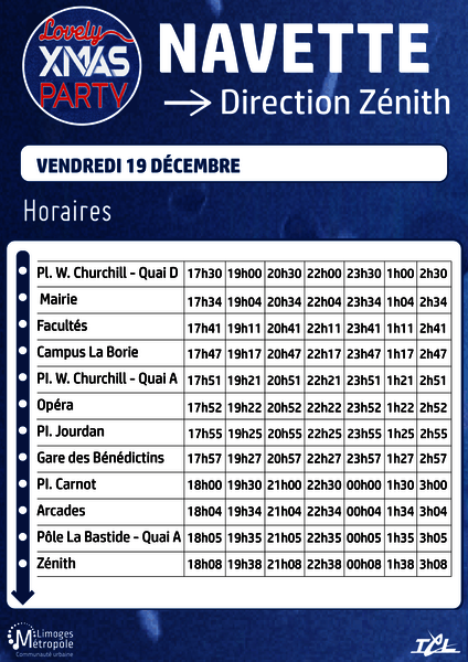 Une Navette spéciale gratuite "Pl. W. Churchill <> Zénith" est mise en place à partir de 17h30.